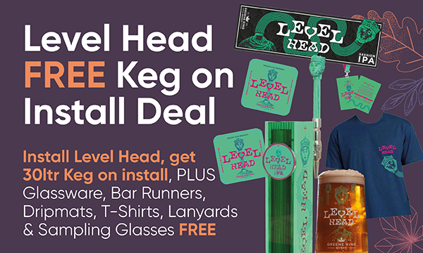 Install Level Head, get 30ltr Keg on install, PLUS Glassware, Bar Runners, Dripmats, T-Shirts, Lanyards & Sampling Glasses FREE