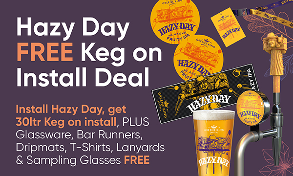 Hazy Day Free Keg on Install Deal Install Hazy Day, get 30ltr Keg on install, PLUS Glassware, Bar Runners, Dripmats, T-Shirts, Lanyards & Sampling Glasses FREE