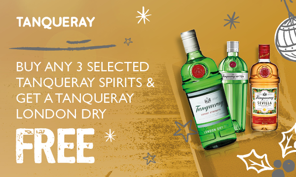 FREE 70cl bottle of Tanqueray London Dry when you buy any 3 x 70cl Tanqueray London Dry, Tanqueray Sevilla or 1lt Tanqueray 10. 300 deals available from 25th November 2019.