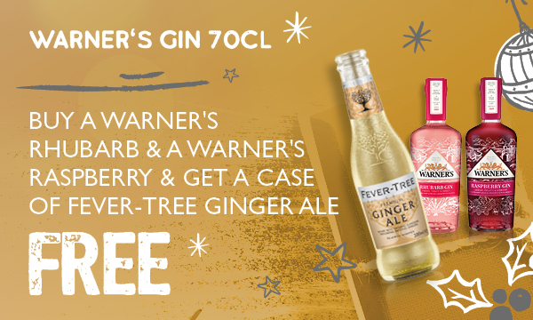FREE case of Fever Tree Ginger Ale, when you buy 1 x 70cl Warner's Rhubarb & 1 x 70cl Warner's Raspberry. 200 deals available from 25th November 2019.