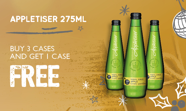 FREE case of Appletiser 275ml, when you buy 3 x cases of Appletiser. 500 deals available from 25th November 2019.