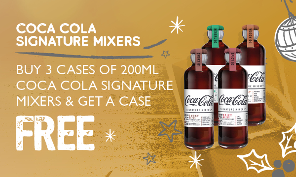 FREE case of Coca-Coca cola Signature mixers, when you buy 3 x cases of Coca-Coca cola Signature mixers (Herbal, Smoky, Spicy, Woody). 200 deals available from 25th November 2019.