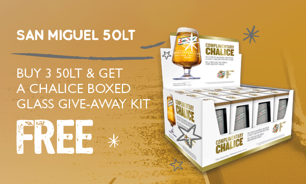 Buy 3 x 50lt of San Miguel, get a Chalice Boxed glass give-away kit FREE