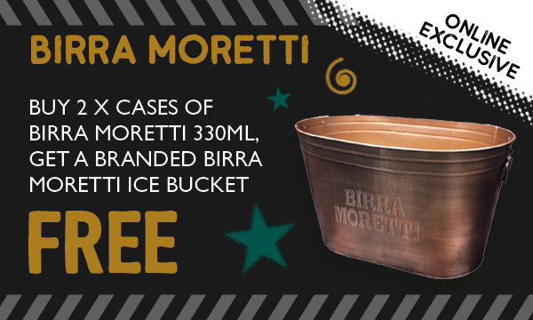Buy 2 x cases of Birra Moretti 330ml, get a branded Birra Moretti ice bucket FREE
