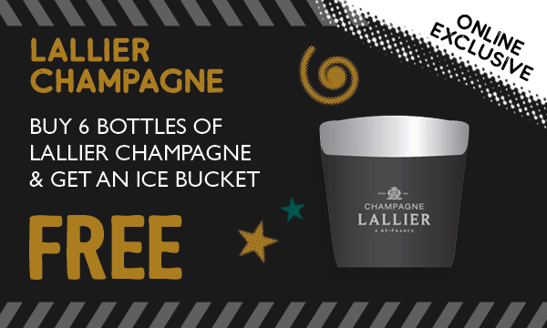 FREE Lallier ice bucket, when you buy 6 x bottles of Lallier champagne. ONLY 20 deals available from 29th November 2019. AVAILABLE ONLINE ONLY.