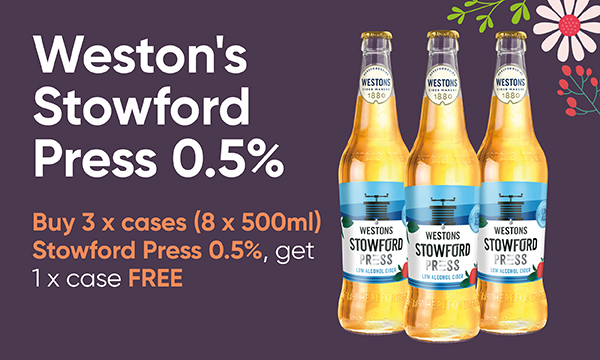 Weston's Stowford Press 0.5% Buy 3 x cases (8 x 500ml) Stowford Press 0.5%, get 1 x case FREE