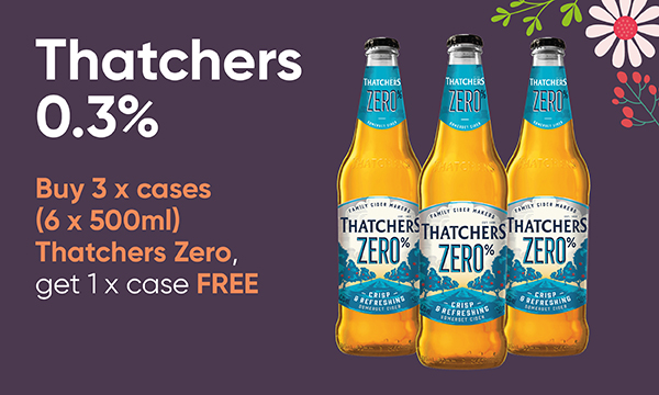 Thatchers 0.3% Buy 3 x cases (6 x 500ml) Thatchers Zero, get 1 x case FREE