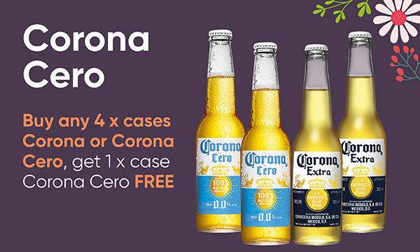 Corona Cero Buy any 4 x cases Corona or Corona Cero, get 1 x case Corona Cero FREE
