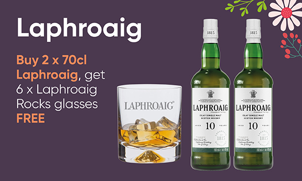 Laphroaig Buy 2 x 70cl Laphroaig, get 6 x Laphroaig Rocks glasses FREE