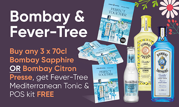 Buy any 3 x 70cl Bombay Sapphire or Bombay Citron Presse, get Fever-Tree Mediterranean Tonic & POS kit FREE (Funded 50/50 with FT)