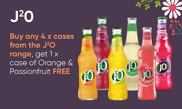 J20 Buy any 4 x cases from the J2O range, get 1 x case of Orange & Passionfruit FREE