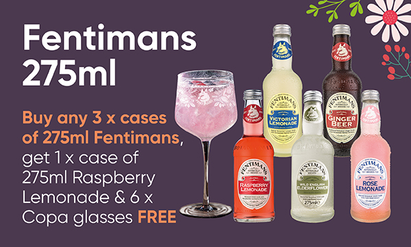 Buy any 3 x cases of 275ml Fentimans, get 1 x case of 275ml Raspberry Lemonade & 6 x Copa glasses FREE