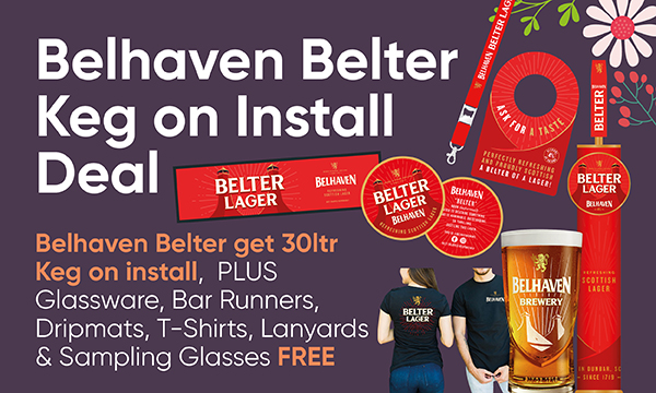 Belhaven Belter Keg on Install Deal Belhaven Belter get 30ltr Keg on install, PLUS Glassware, Bar Runners, Dripmats, T-Shirts, Lanyards & Sampling Glasses FREE