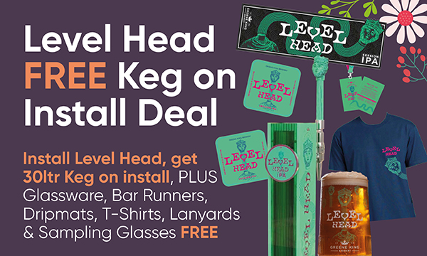 Install Level Head, get 30ltr Keg on install, PLUS Glassware, Bar Runners, Dripmats, T-Shirts, Lanyards & Sampling Glasses FREE