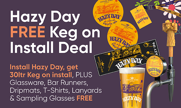 Hazy Day Free Keg on Install Deal Install Hazy Day, get 30ltr Keg on install, PLUS Glassware, Bar Runners, Dripmats, T-Shirts, Lanyards & Sampling Glasses FREE