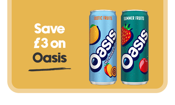 Save £3 on Oasis Save £3 on each case of Oasis cans.