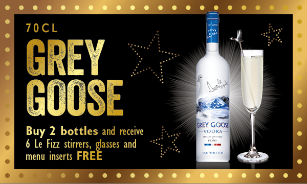 Grey Goose 70cl Buy 2 bottles and receive 6 Le Fizz stirrers, glasses and menu inserts free 6 Le Fizz Stirrers, glasses, menu inserts