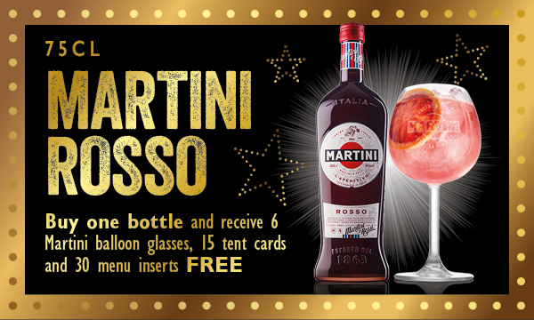 Martini Rosso 75cl Buy one bottle and receive 6 Martini balloon glasses, 15 tent cards and 30 menu inserts free 6 Martini balloon glasses, 15 tent cards and 30 menu inserts