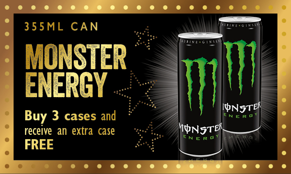 Monster Energy Buy 3 cases and receive an extra case free