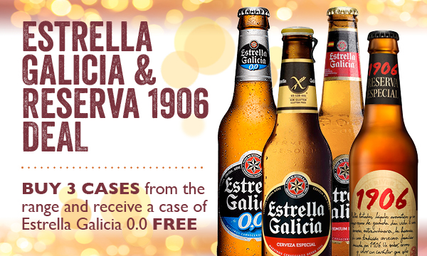 Estrella Galicia & Reserva 1906 Buy 3 cases from the range and receive a case of Estrella Galicia 0.0 free