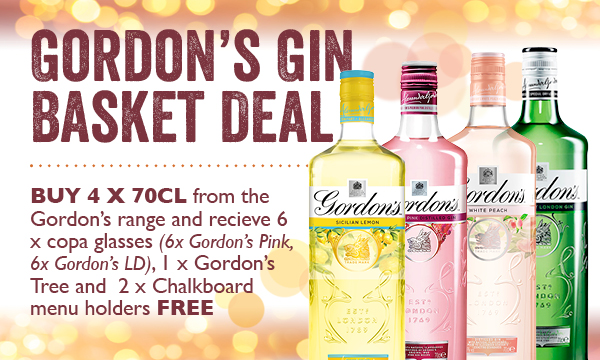 Buy 4x from the Gordon's range & get 6x copa glasses (6x Gordon's pink, 6x Gordon's LD) x1 Tree & 2x Chalkboard menu holders