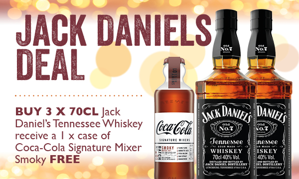 Buy 3 Jack Daniel's Tennessee Whiskey 70cl - Get a free case of Coca-Cola Signature Mixer Smoky