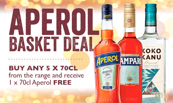 Aperol Deal Buy 5 from the range to get 1 x Aperol 70cl FoC