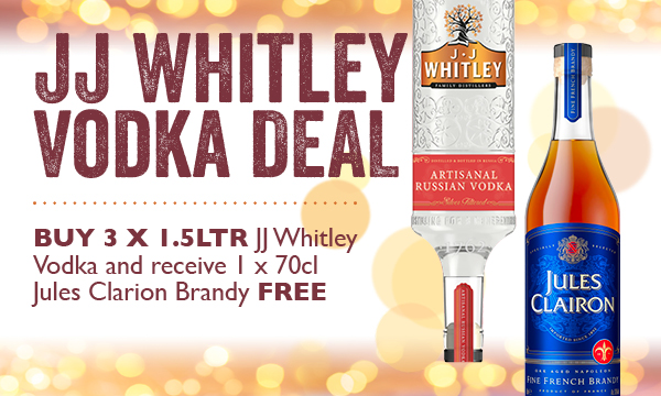 JJ Whitley & Jules Clarion Deal Buy 3 JJ Whitley Vodka 1.5L & get 1 x free Jules Clarion Brandy