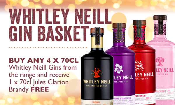 Whitley Neill & Jules Clarion Deal Buy any 4 Whitley Neill Gins & get 1 x free Jules Clarion Brandy