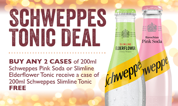 Schweppes Tonic Deal Buy 2 x 200ml Schweppes Pink Soda or Slimline Elderflower Tonic and get 200ml Slimline Schweppes Tonic Free