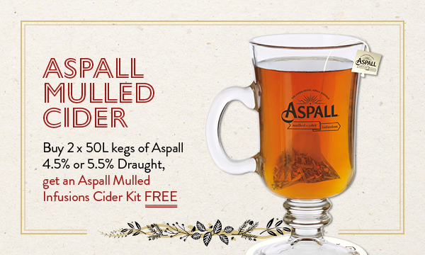 Buy 2 x 50L kegs of Aspall 4.5% or 5.5% Draught, get an Aspall Mulled Infusions Cider Kit FREE