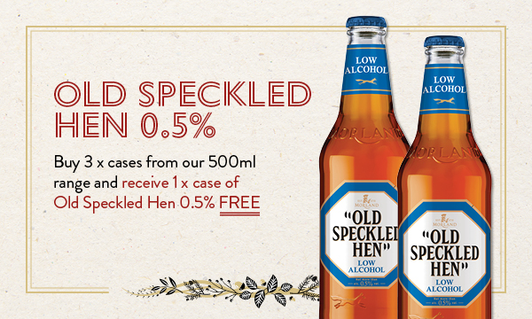 Buy 3 x cases from our 500ml range and receive 1 x case of Old Speckled Hen 0.5% FREE