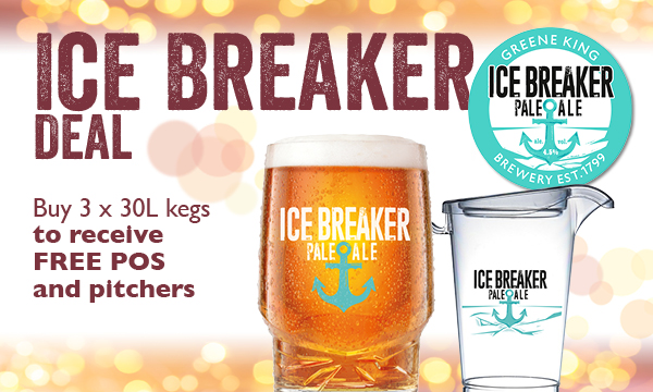 Ice Breaker Deal Buy 3 x 30L kegs Ice Breaker and receive free POS and pitchers 10x 4-pint pitchers, 24x pint glasses, 4x A2 poster, possible mini chalk boards
