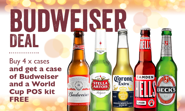 Budweiser Deal Buy 4 cases and get a World Cup kit + case of budweiser free