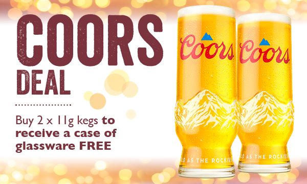 Buy 2 11g kegs of Coors to receive a free case of 24 glasses