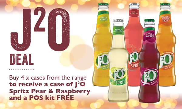 Buy 4 cases from the J2O range to receive 1 x case of J20 Spritz Pear and Raspberry plus cocktail POS kit Free