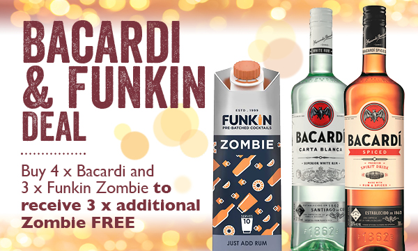 Buy 4 x Bacardi (2 x Spiced and 2 x Carta Blanca) & 3 x Funkin Zombie, get 3 x FREE Zombie