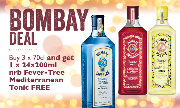 Bombay Deal Buy 3 x 70cl, get 1 x 24x200ml free 6 x Bombay glasses available per customer