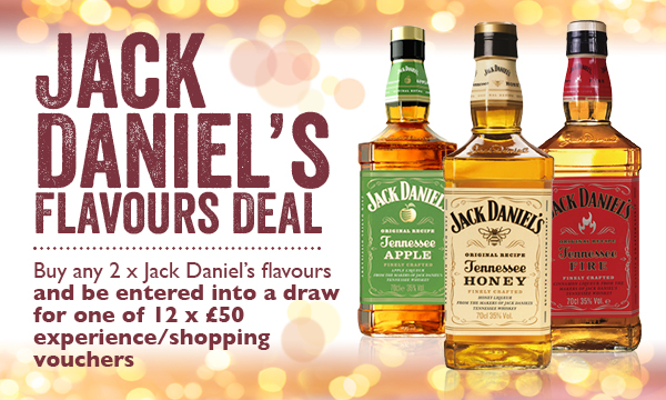 Buy any x 2 Jack Daniel's 70CL Flavours (Apple, Honey or Fire) and be entered into a draw for one of 12 x £50 experience/shopping vouchers