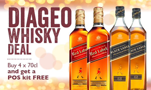 buy 4, get POS kit free (1x Johnnie Walker garnish tray & 24x highball glasses)